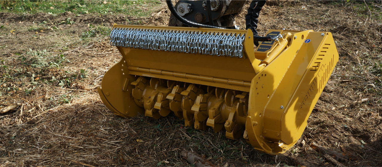 Choose from our eight excavator mulcher heads to grind stumps, remove vegetation and brush, harvest wood, clear riverbanks, create fire breaks, handle roadside maintenance, and more. Seppi M. excavator mulchers handle trees up to 16" in diameter, grind stumps down to 12" below the ground, and have working widths ranging from 4" to 59".